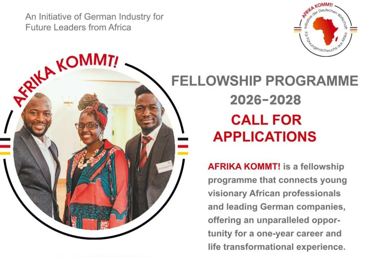 The AFRIKA KOMMT! Fellowship Programme 2026–2028 is now open for applications. This prestigious initiative connects young African professionals with leading German companies for an intensive fellowship experience that combines corporate placements, leadership development, and intercultural exchange in Germany.