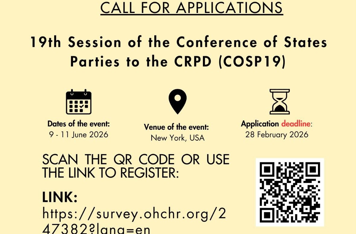 Call for Applications: 19th Session of the Conference of States Parties to the CRPD (COSP19), New York 2026(Fully Funded UN Conference 2026)