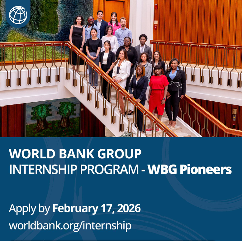 World Bank Group Internship Program (WBG Pioneers) 2026: Fully Paid Global Internship Opportunity for Undergraduate and Postgraduate Students