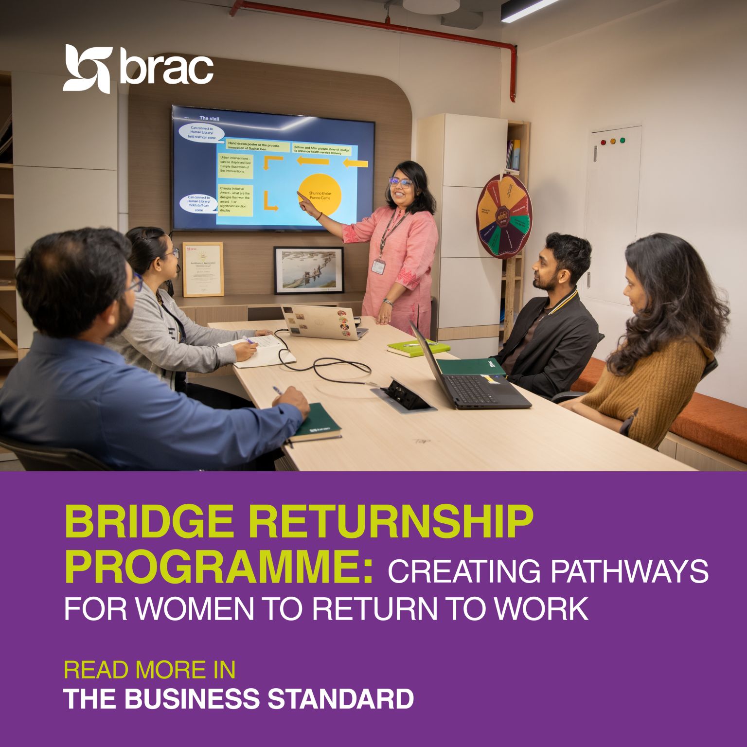 The BRIDGE Returnship Programme by BRAC is a paid, six-month returnship designed specifically for mid-career female professionals who have taken
