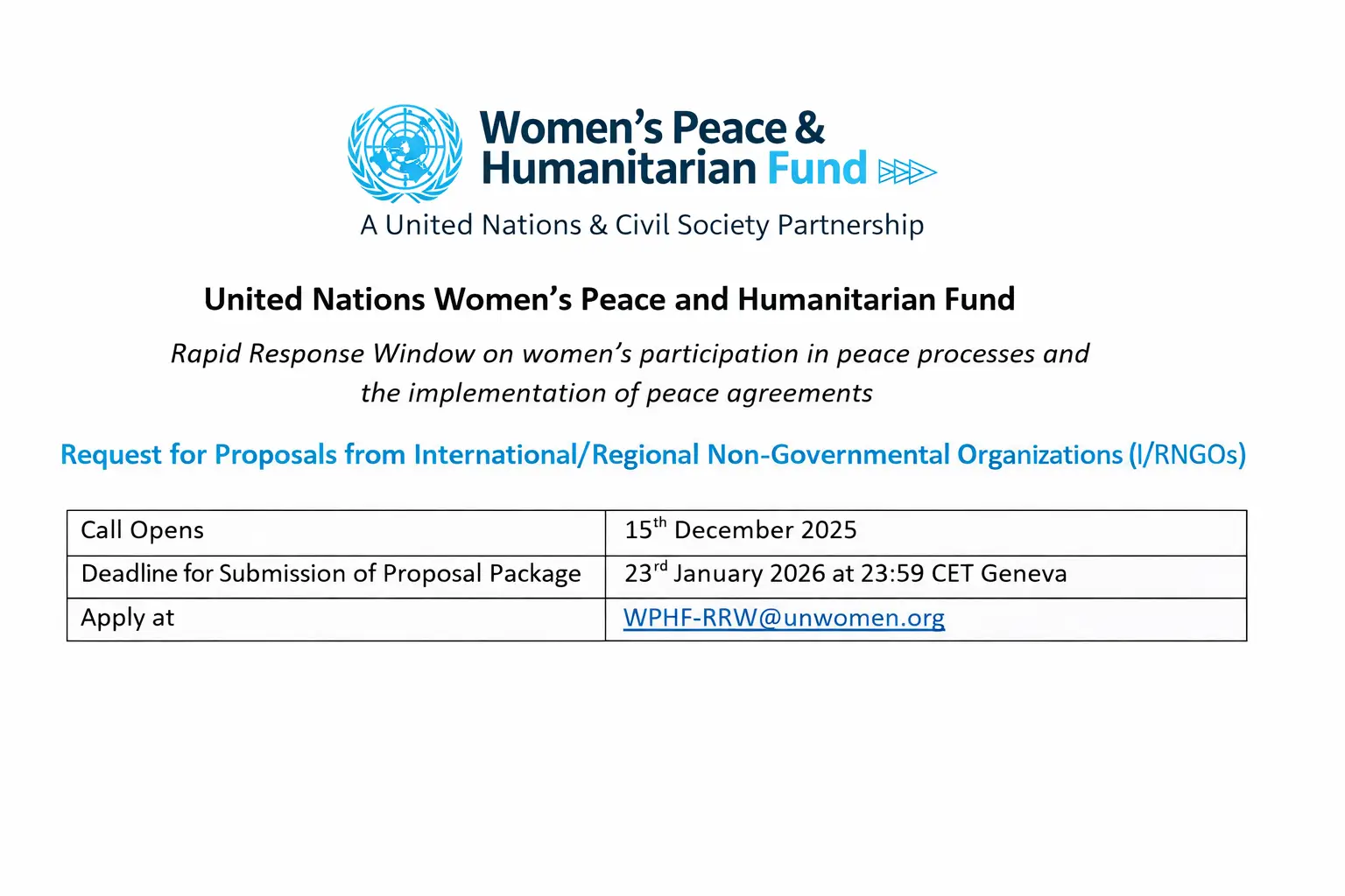 United Nations Women’s Peace and Humanitarian Fund (WPHF) Call for Proposals: Rapid Response Window I/RNGO Partners (2026)